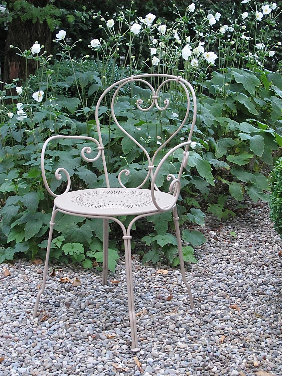 Hersteller: Fermob. Material: Stahldrahtstruktur, Sitzflächen aus perforiertem Stahlblech. Grösse: B 45 x T 40 x H 87 cm, stapelbar. Gewicht: 6 kg. Farben: in 23 Farben erhältlich, einbrennlackiert mit UV-Schutz-Pulverlacken.
